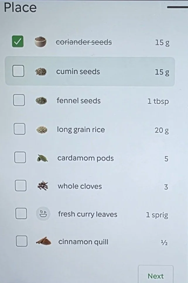 Recipe Step Reduction – Recipes now list some of the ingredients grouped together and you can weigh in and tick off each item, without having to click through individual screens, speeding up cooking and forward planning.
